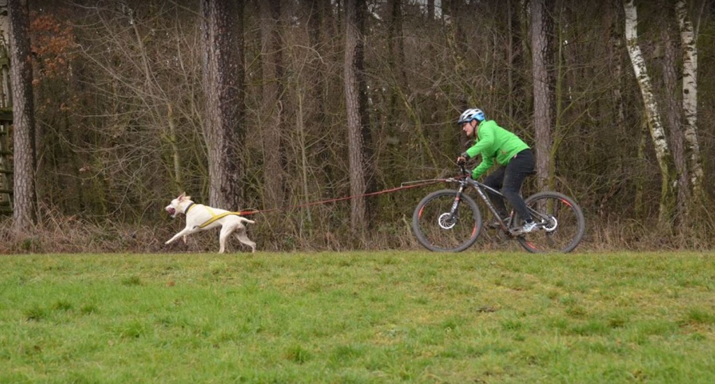 Das Fahrrad: Logischerweise benötigen wir für die Ausübung dieses Sports ein geeignetes Fahrrad. In diesem Fall ein geländefähiges Mountainbike, welches mit guten Bremsen und passender Bereifung ausgestattet ist. Bikejöring wird, wie alle Zughundesportarten im Dry Land Bereich, vor allem auf Feld-, Wald- und Wiesenwegen ausgeübt. Aufgrund der Temperaturen bewegen wir uns hier vor allem im Herbst bis in das Frühjahr, was bedeutet, dass wir es häufig mit Regen, rutschigen Böden oder Laub zu tun haben werden. Mit einem klassischen Stadtrad wird es hier schnell gefährlich.