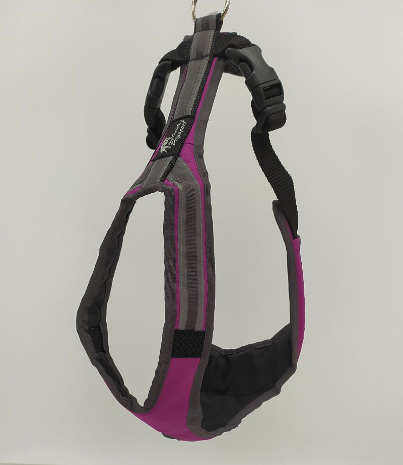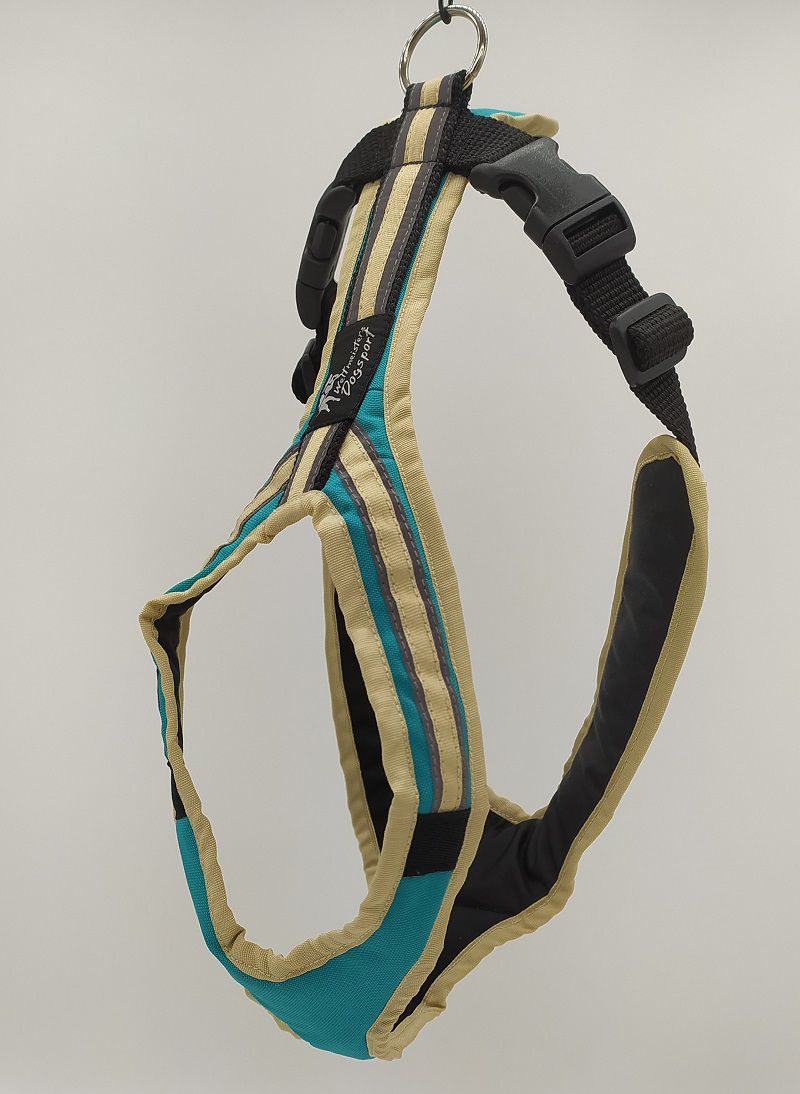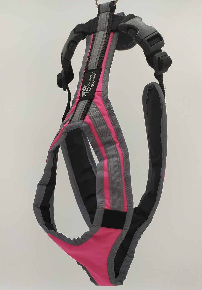 Der Brustgurt kann individuell an den Hund angepasst werden. Das Band zur Anpassung des Geschirrs an